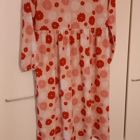 VeroModa -merkkinen tummansininen mekko, jossa kukkakuvioita.