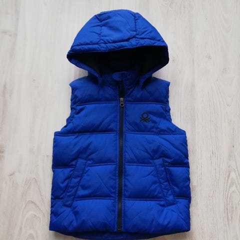 Myydään erittäin siisti Benettonin hupullinen untuvaliivi vetoketjulla.