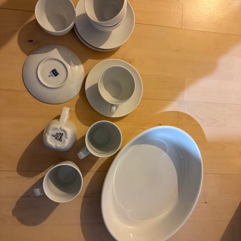 Kuvan ehjät Ikean lautaset, kulhot ja mukit kaupan. Lautasista saattaa löytyä jotakin tummentumaa. Myyn kaikki kerralla, yht. 20e. Nouto Haminasta tai koksilta ennen/jälkeen työvuoron.
