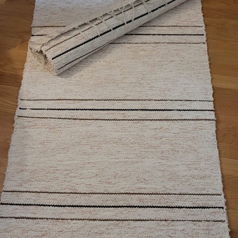 5. Vaaleanraidallinen matto, koko 173x65 cm. Ohuehko.