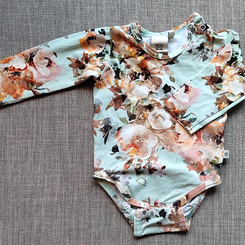 Suloinen Kaikon wind-kuosinen body tuplaneppareilla seuraavalle pienelle. Siisti ja ehjä. Hajusteeton ja eläimetön talous.