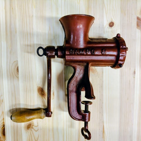 Veivattava ikiaikainen lihamylly. Ollut viime ajat koristeena
