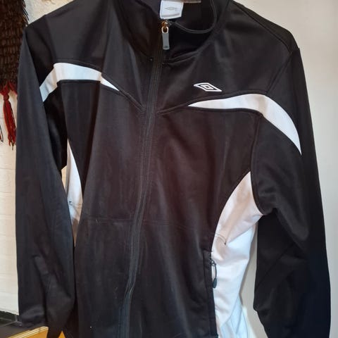 Kuvien mukainen Umbron urheilutakki. Edessä vetoketjulliset taskut, helmassa kiristysmahdollisuus. Kevyt ja mukava päällä. Siisti ja hyväkuntoinen takki. Koiratalous, joten jokunen karva voi tulla mukana putsauksesta huolimatta.