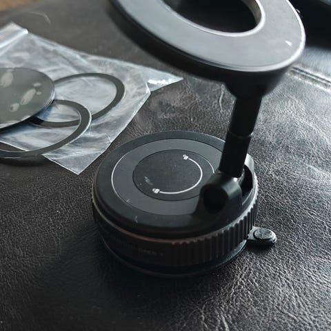 Kuvanmukainen kännykkäteline, kiinnitys radion taakse.