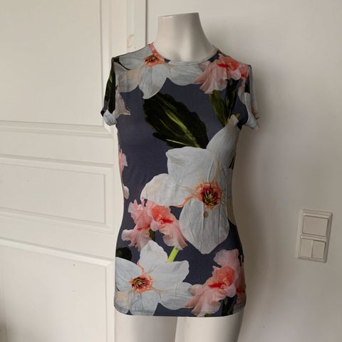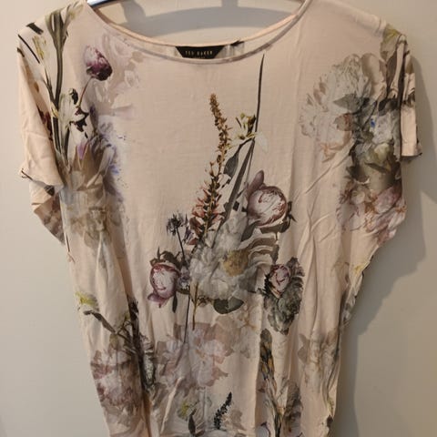 Erittäin hyväkuntoinen, hurmaava kukkakuvioinen paita merkiltä Ted Baker. Kokomerkintä 3, kai-kai 50cm, olka-helma 62 cm. Materiaali ei jousta.
