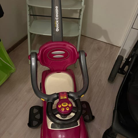 Melkoisen paljon jo käytetty, mutta oikein toimiva edelleen. Lokasuojat haalistuneet, mutta ehjät. Renkaat ehjät, mutta jo kulumaa tietenkin. Kädensijat kaipaa vaihtoa jos haluaa, mutta meillä mennyt näinkin! Esteettisistä vioista huolimatta toimiva menopeli.