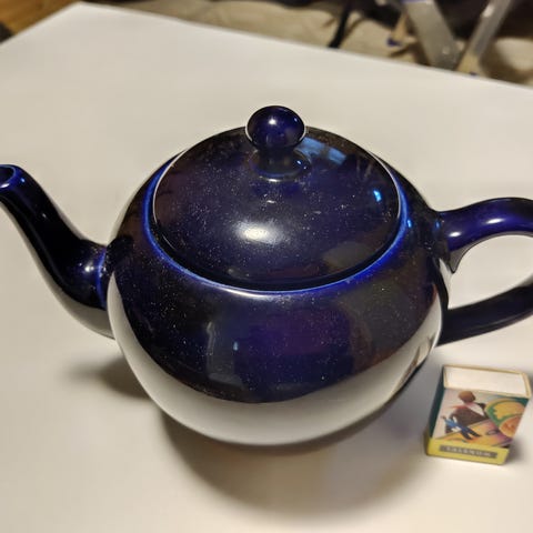 Moskovan 1980 olympialaisista ostettu posliinikannu. Posliinissa muutama valmistusvirhe ja kannessa joku jälki, lienee myös valmistuksessa tullut. Kannu on kuitenkin ehjä ja siisti ei halkeamia tai kulumaa. Korkeus 9cm Halkaisija 10cm