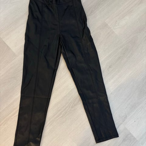 Kaksi kertaa jalassa olleet vaaleat H&M:n tekonahkahousut. Koko 38.