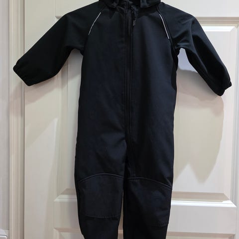 Muuten hyväkuntoinen, mutta polvissa ja pepussa pikkasen tummentumaa. Raidat pinnassa on heijastinta.
