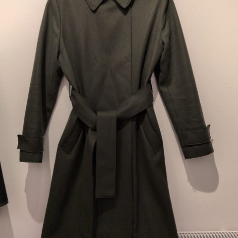 Uutena ostettu ja vain paristi kaupunkitakkina pidetty. Aivan ihana, pitkä (itselle 163cm pituisena liki nilkkapituinen) ja lämmittävä bukleepintainen villakangastakki, joka ei ole omassa kaapissa ainakaan toistaiseksi päässyt ansaitsemaansa käyttöön, kun itselle eksyy toppatakit luontevammin päälle arjessa pikkulasten kanssa. Takissa on pitkä, kaunis takahalkio, joten siinä ei ole hankala liikkua.