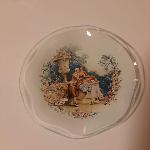 Uniikki käsin maalattu vintage posliini lautanen