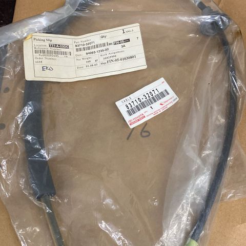 Myydään Toyotan uusi ja alkuperäinen osa, osanumero 55906-32070 (CABLE, (CABLE SUB-ASSY, DEFROSTER DAMPER CONTROL), Ilmanvaihdon säätimen vaijeri). Sopivuus: