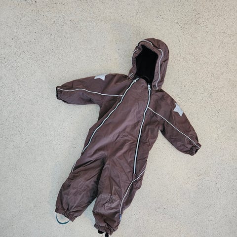 Haalari on pitänyt lapsen vielä kuivana ja lämpimänä pakkaspäivinä, mutta kovin loskaiseen tai märkään keliin tai lätäköissä istumiseen en tätä enää laittaisi.