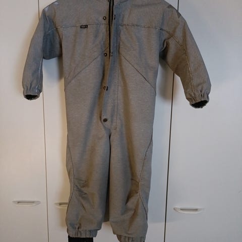 Haalari on yhä lämmin ja käyttökelpoinen, mutta siinä on paljon kulumaa ja pehmentymää varsinkin polvissa ja pepussa sekä lahkeiden heijastimissa, jotka repsottavat. Jalkalenksut ovat tallella.