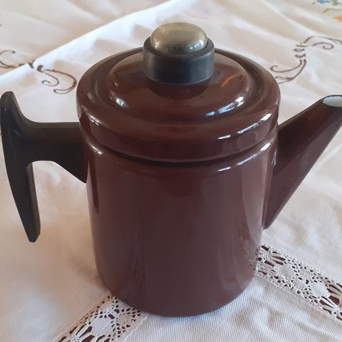 Pikku Pehtoori, Finelin punainen kahvipannu on valmistettu kestävästä punaisesta panssariemaloidusta teräksestä. Antti Nurmesniemen suunnittelema.