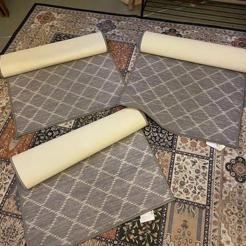 Hyvälaatuiset uudenveroiset käytävämatot. 300x80 cm ja 116x59 cm, 100 % polyamidi. Yhteishintaan 100€