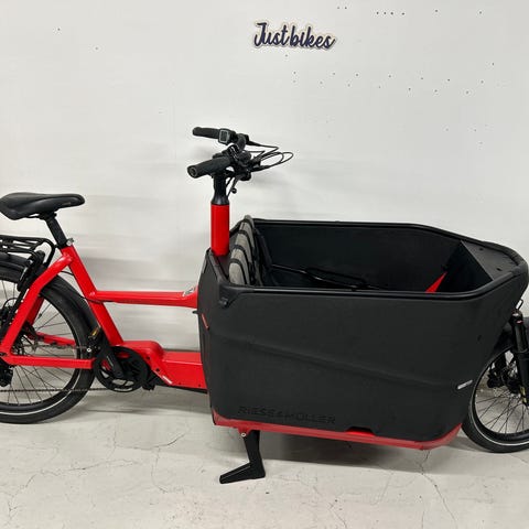 R&M Carrie on uusi malli kaudelle 2024. Carrie on pienin laatikollinen pyörämme, mutta sen taika on muunneltavuudessa ja siinä, että Flex Boxin voi taittaa auki, jolloin siihen mahtuu enemmän tavaraa tai jopa kaksi lasta. Mutta laatikko suljettuna se mahtuu myös pieniin pyörävarastoihin. Kokonaispituus on vain 2090 mm ja leveys 460 mm. Ja lisäksi pyörän suunnittelussa ja valmistuksessa on otettu ympäristönäkökulmat huomioon. Materiaalit ovat mahdollisimman pitkälle kierrätettyä, ja ne on myös suunniteltu kierrätettäviksi. Rungossa 81% on kierrätettyä ja sertifioitua alumiinia, jolloin samalla energiamäärällä on pystytty valmistamaan +429% enemmän runkoja. Ja ihmisten turvallisuus on luonnollisesti huomioitu, ja esimerkiksi kuomussa ja sen ikkunoissa ei ole käytetty PVC:tä. Ja lisäksi kuomussa on tummennusmahdollisuus aurinkoisia päiviä varten, eli lapset säästyvät paremmin paahtavalta keskikesän auringolta.
