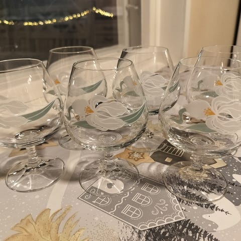 Kristalli konjakkilasit. Hyväkuntoinen setti. En postita.