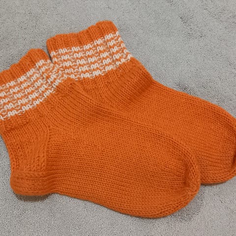 Itse tehdyt, muutamia kertoja käytetyt villasukat. Lankana 7-veljes, koko ~40.