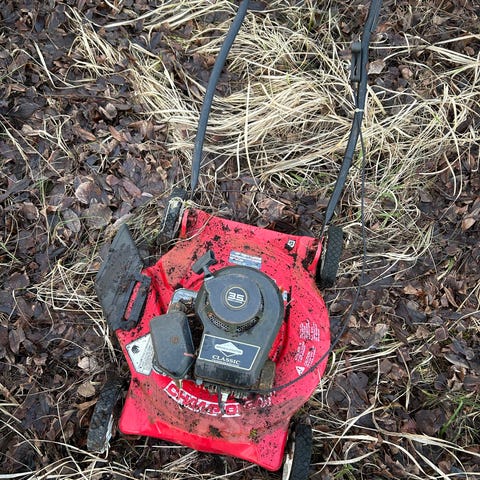 Hyväkuntoinen pakoputki ja suojaritilä ruohonleikkuriin . Ollut Briggsin koneessa.