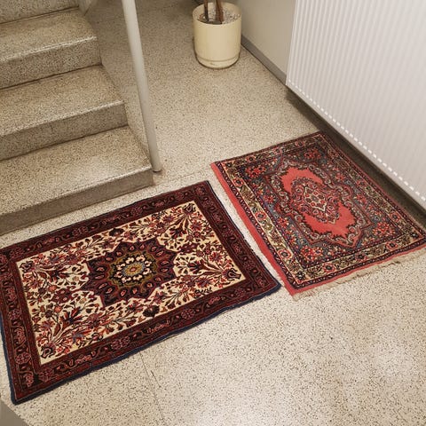 Käsinsolmittuja pienehköjä aitoja villamattoja (Iran, Pakistan, Afganistan jne). Hinat alkaen 20€, useimmat 50€ ja kalleimmat 100€. Annan mittoja ja lisätietoja kiinnostuksen mukaan. Myös muutama kelim-matto löytyy.