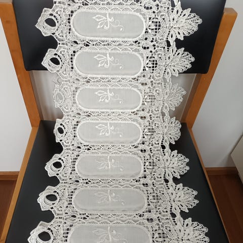 Verho 2m x 2m ja verhokappa 4m x 23cm pitsimäinen kukkakuvio, 15€