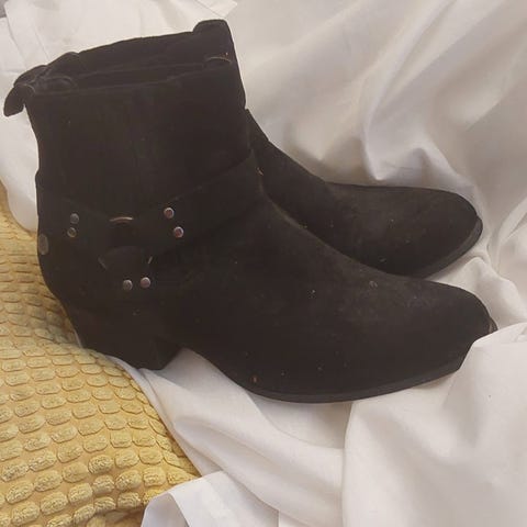 RB-Designed nilkkurit, koko 38, ruskea väri. Saappaissa on vetoketju sivussa ja korkea korko, noin 7 cm. Materiaalina on aito nahka. Saappaat sopivat arkikäyttöön ja erilaisiin asukokonaisuuksiin.