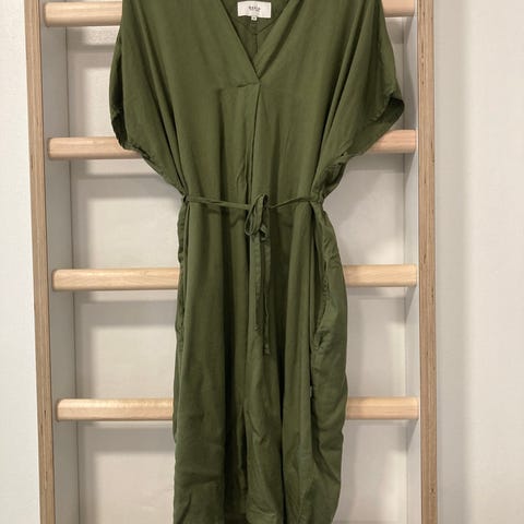 Myyntiin Makian mekko, koko S. Kunto todella hyvä, kätevät taskut sivussa, takana pitkä, toimiva vetoketju, 100% viskoosia. (Kuvassa haalistuma on kamerasta. )