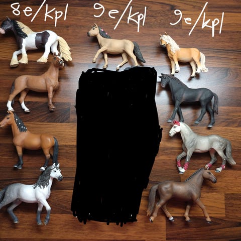 Paljon Rambon tallista tuttuja. Eri rotuisia esim. islanninhevonen, shetlanninponi, falabella, dartmoorin poni. Eri hintaisia.