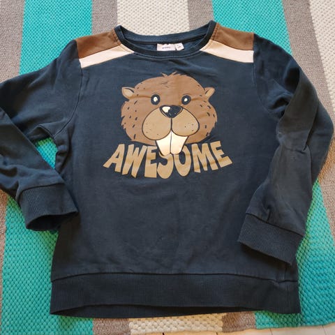 Ohut collegepaita, koko 110/116. Yhden lapsen käyttämä, siisti ja tahraton, ihan pientä haitua pinnassa joka näkyy mustissa kohdissa.