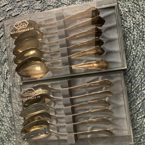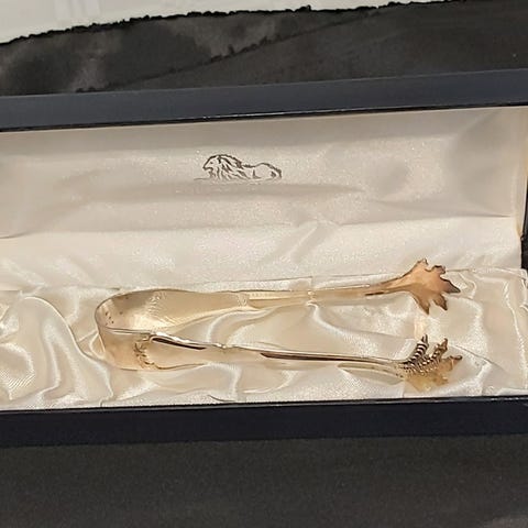 Hopeiset Chippendale sokeripihdit rasiassa, ei kaiv.