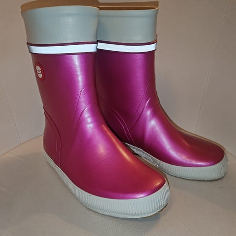 Huopavartiset kumisaappaat. Tumma lila. Lämpimät vaikka talvikäyttöön. Postikulut noin 10e.