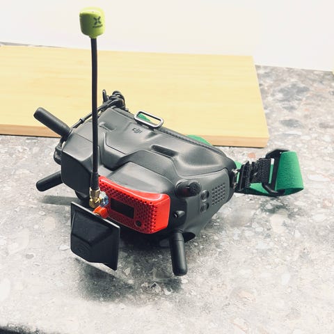 DJI Goggles virtuaalitodellisuuslasit valkoisena. Sopii käytettäväksi esimerkiksi drone-lennätyksissä tai muissa virtuaalitodellisuussovelluksissa.