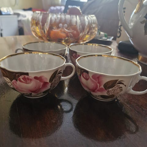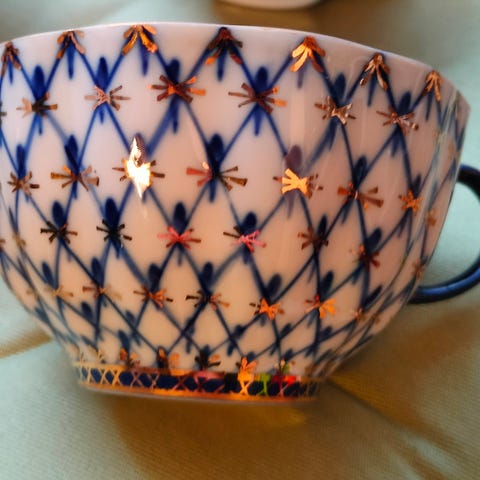 Hyväkuntoiset ehjät 250ml teekupit aluslautasilla. Lomonosovin sarja Mart/Maaliskuu leimat LFZ 1991 jälkeen.
