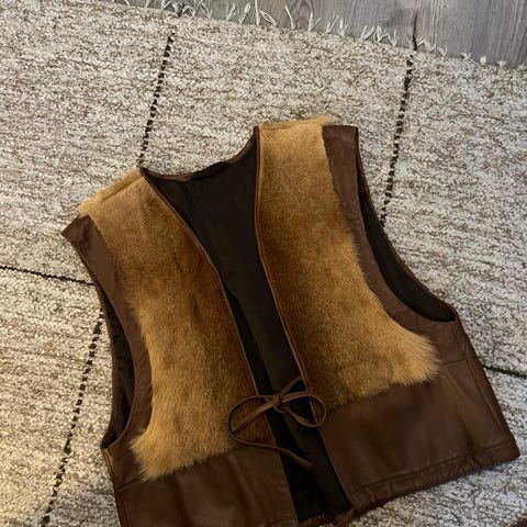 TRF Leather Collection naisten vintage liivi on ruskea ja valmistettu mokkanahasta. Koko on M. Tämä liivi sopii hyvin erilaisiin asukokonaisuuksiin ja tuo tyylikkään lisän vaatekaappiisi.