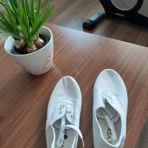 Myydään muutamia kertoja käytetyt Espritin valkoiset tennarit kokoa 40.