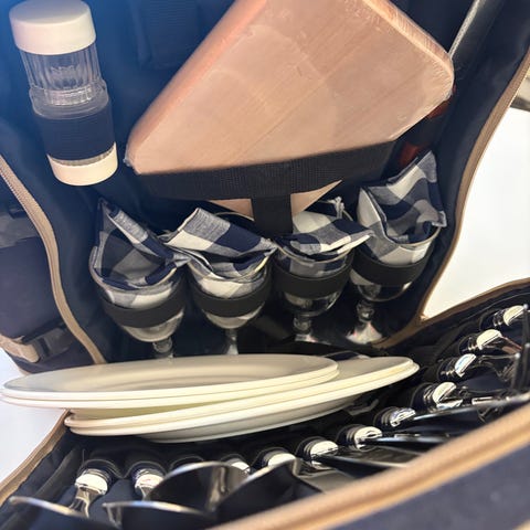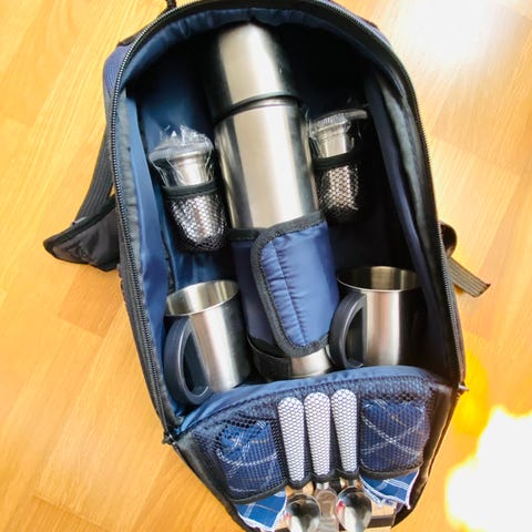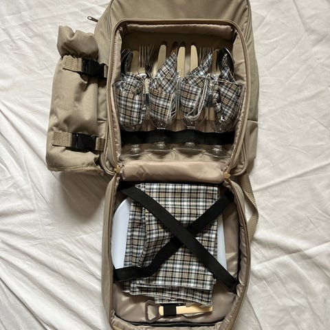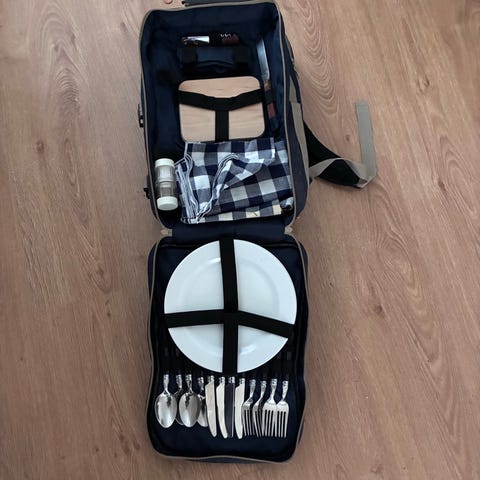 Picnic-reppu, sis. kylmälaukku ja astioita