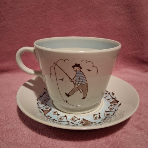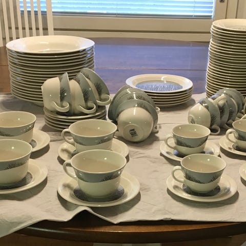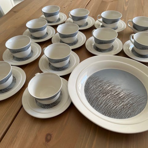 Harvinaisempaa Merituuli -astiastoa, jota täydennetty muutamalla Tuuli-astialla.