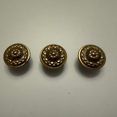 Hyväkuntoiset avainkilvet viiteen kirjoituspöydän laatikkoon. Koristeellinen malli. Materiaali messinki. Sopii hyvin mm. antiikkiseen kirjoituspöytään.