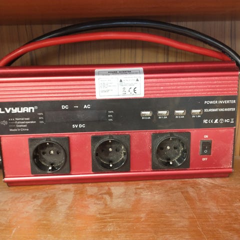 12 V Invertteri suuritehoinen suko ja usb pistokkeet vahvat kaapelit akulle.