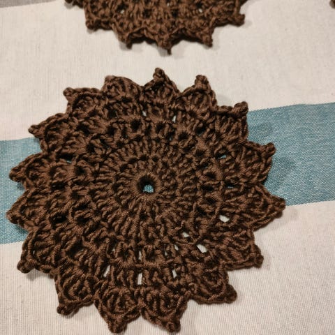 Uusia virkattuja auringonkukka lasinalusia