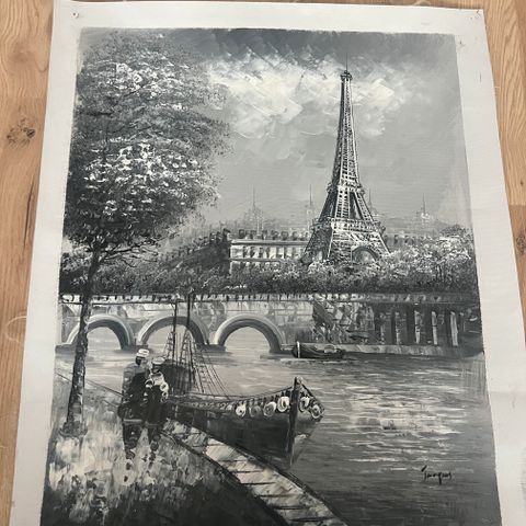 Nuoren taiteilijan maalaama Pariisi aiheinen akryylitaulu 28x35cm.