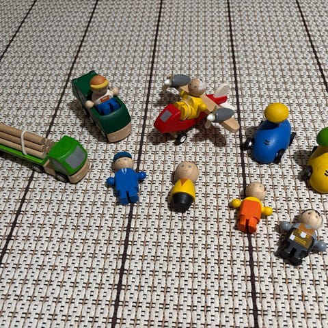 Kuvan lelut. Nouto Tiituspohja tai Seppälä. Hinta yhteensä