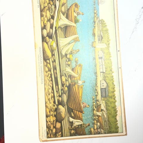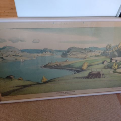 Taulu on erittäin hyväkuntoinen, kehystetty puukehyksin, päällä lasi ja takana ripustuslenkki.