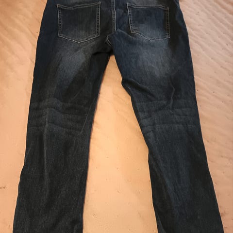 Tummansiniset, värit hyvät kuvista poiketen. Kapea, vartalonmyötäinen istuvuus. Valetaskut edessä ja takana.