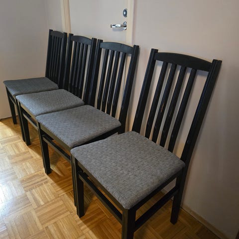 Annetaan ilmaiseksi 4 keinonahkaista ruokailutuolia, puiset jalat. Olleet käytössä 7 vuotta, ostettu Askosta uusina. Ei lemmikkejä taloudessa. Muuten hyvät, tukevat ja mukavat tuolit, mutta keinonahkapäällinen kulunut. Huputtamalla ovat kuin uudet, tai muuten voi korjata päälliset käyttökuntoon. Saa tulla hakemaan ilmaiseksi, vain nouto!