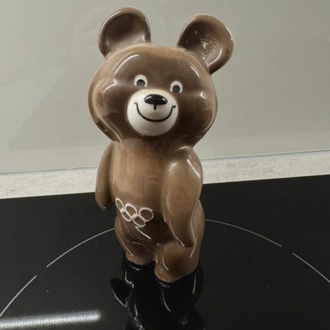 Tästä olympialaisaiheita keräävälle maskotti Moskovan 1980 kisoista.