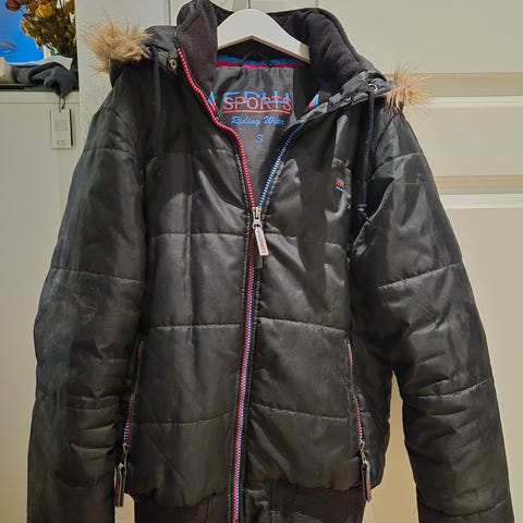 Takissa vetoketjulliset taskut, säädettävät hihansuut, korkea kaulus. Ollut koulu- ja vapaa-ajan käytössä, soveltuu hyvin myös laskettelutakiksi. Pitää vettä ja tuulta joten pysyt kuivana ja lämpimänä säällä kuin säällä.