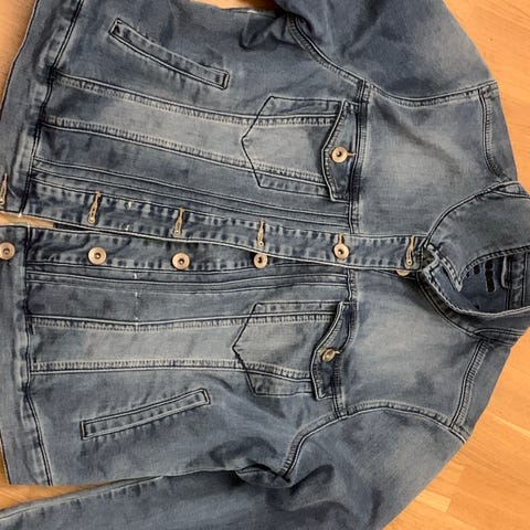 Farkkutakki, sininen farkkutakki, brodeerattu, kirjailtu, 44, XL
