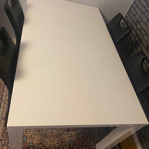 Ostettu Ruokapöytä+ 4 kpl tuoleja noin 9kk sitten ihan uudenveroisia ei tahroja eikä myöskään löydy reikiä, talossa ei löydy lemmikkejä.